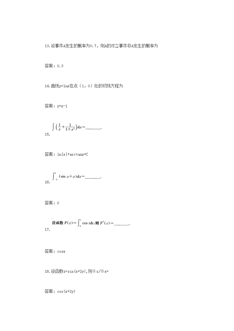 【文档名称】 2016年河南成人高考专升本高等数学二真题及答案(Word版).doc