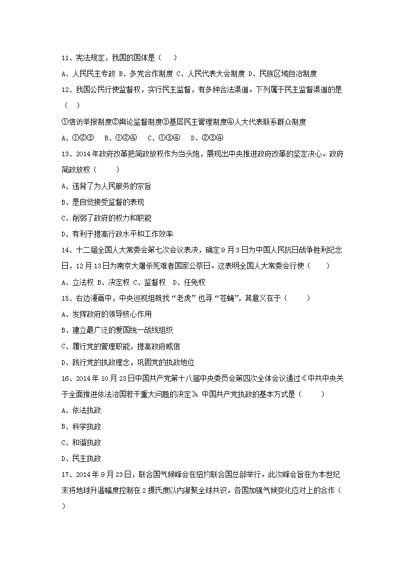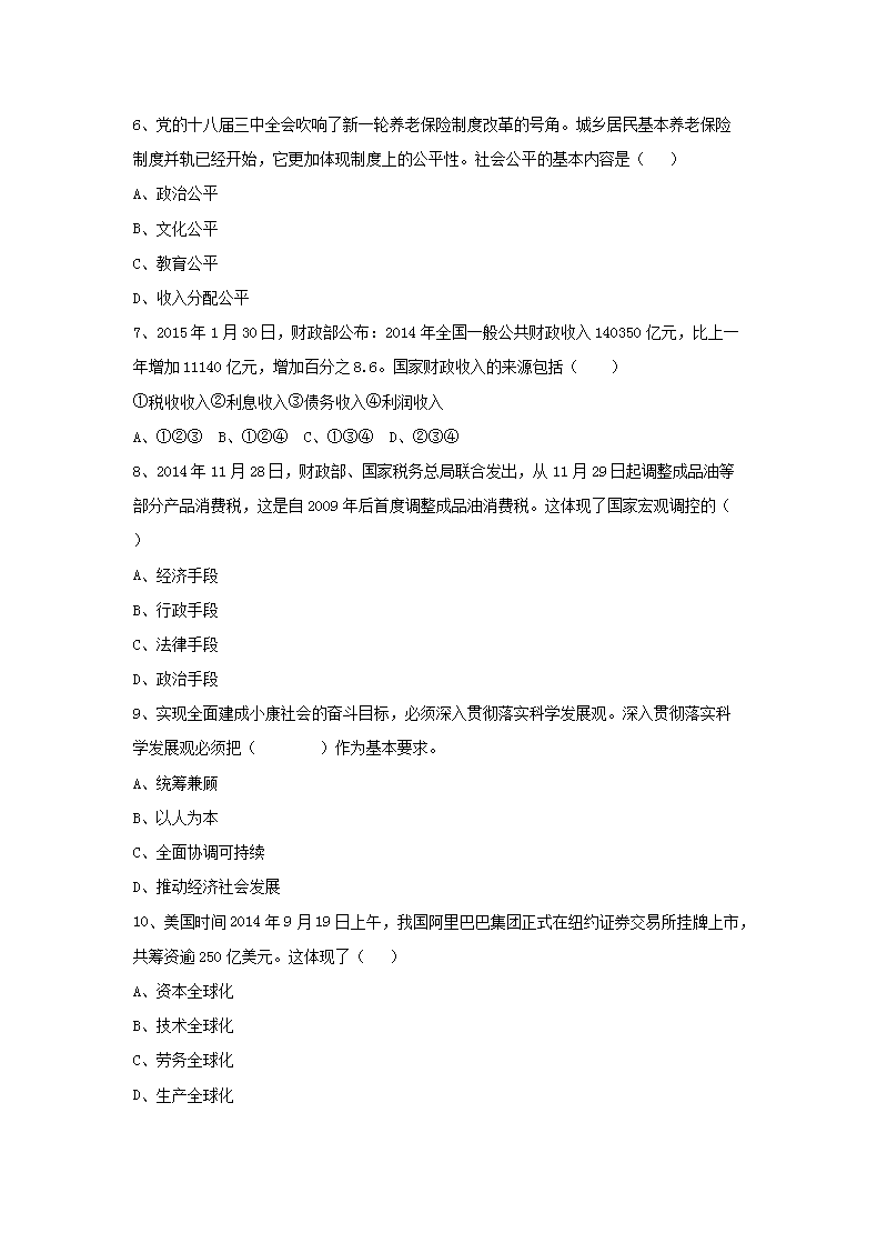 【文档名称】 2015年辽宁普通高中会考政治真题及答案(Word版).doc