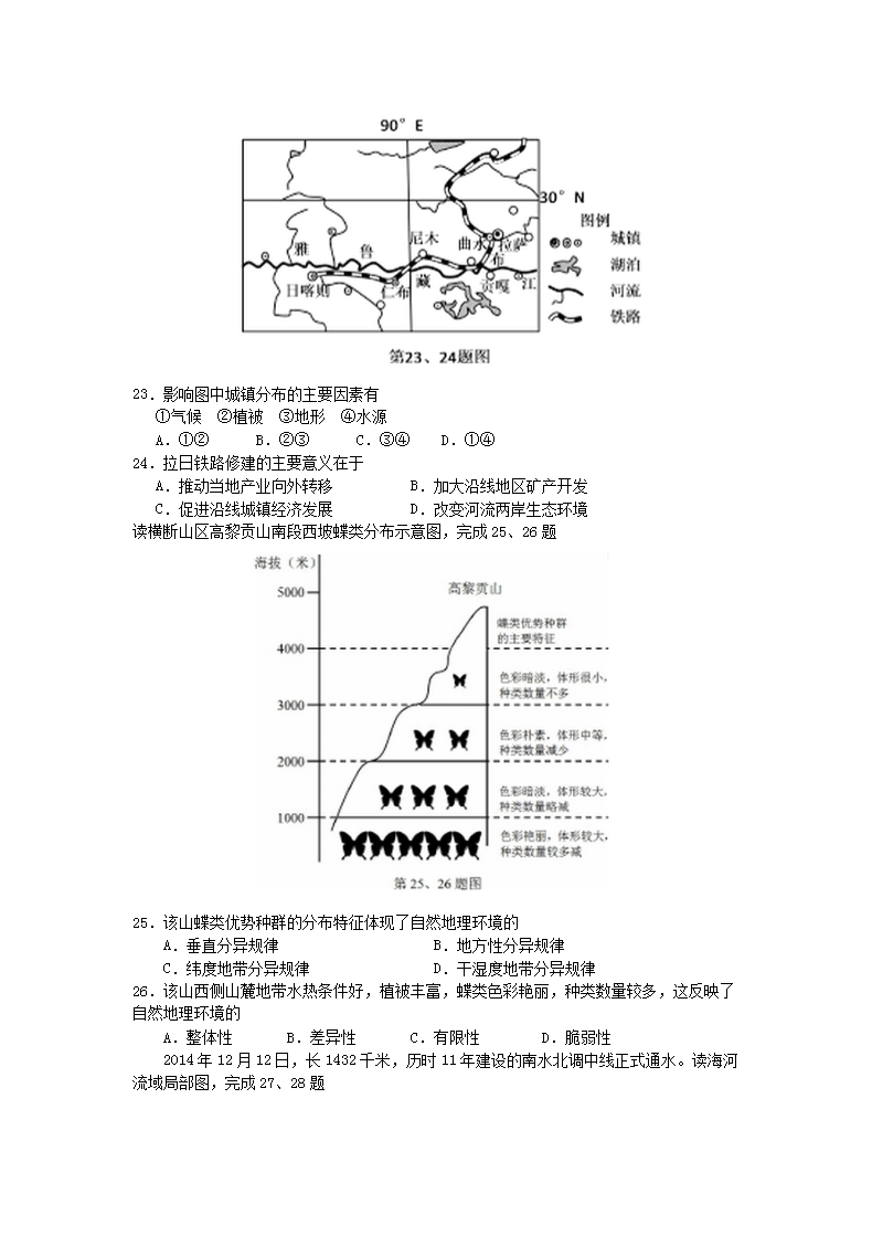 【文档名称】 2015年浙江普通高中会考地理考试真题(Word版).doc