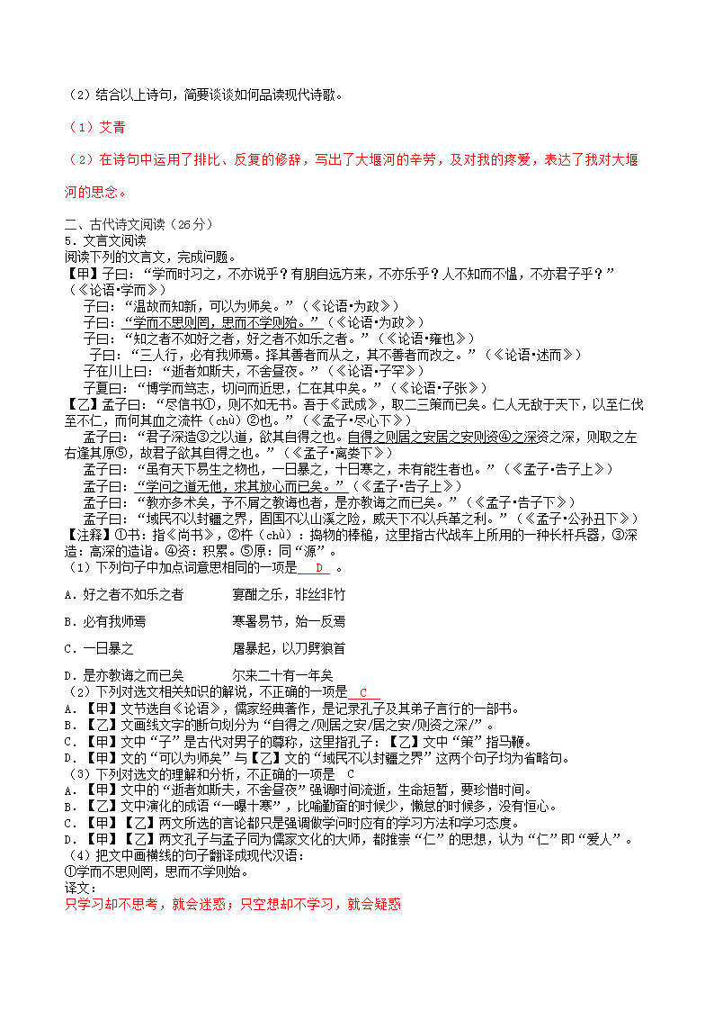 【文档名称】 2019年广西百色市中考语文真题及答案(Word版).doc