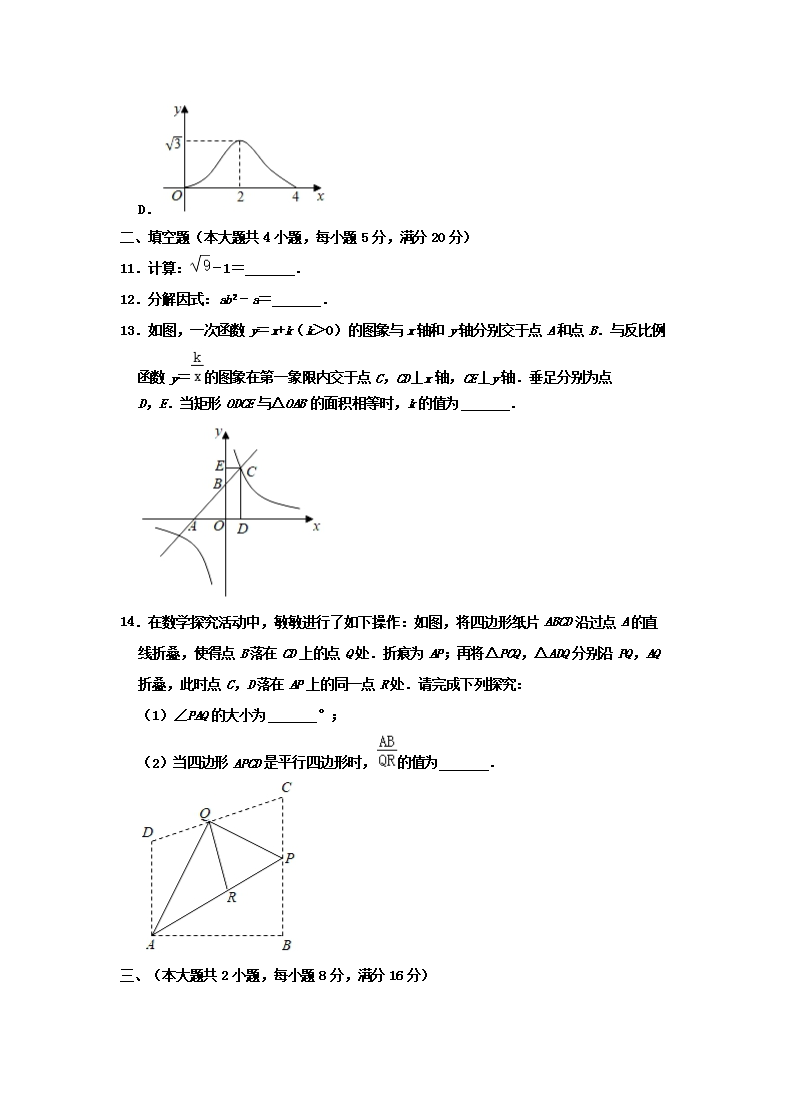 【文档名称】 2020安徽省中考数学真题及答案(Word版).doc