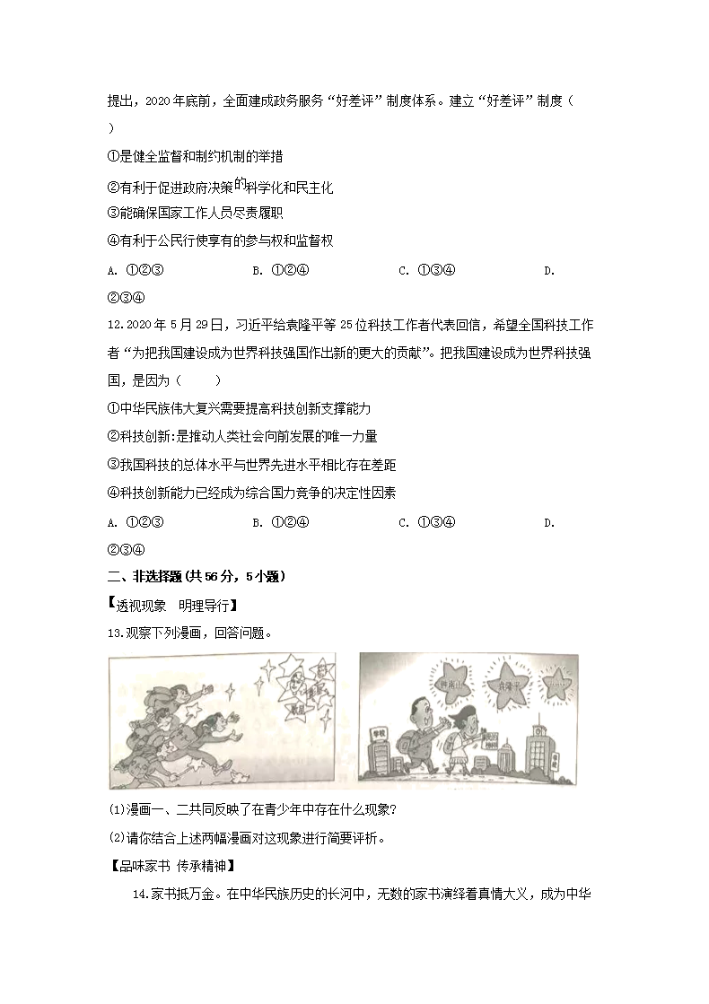 【文档名称】 2020安徽省中考道德与法治真题及答案(Word版).doc