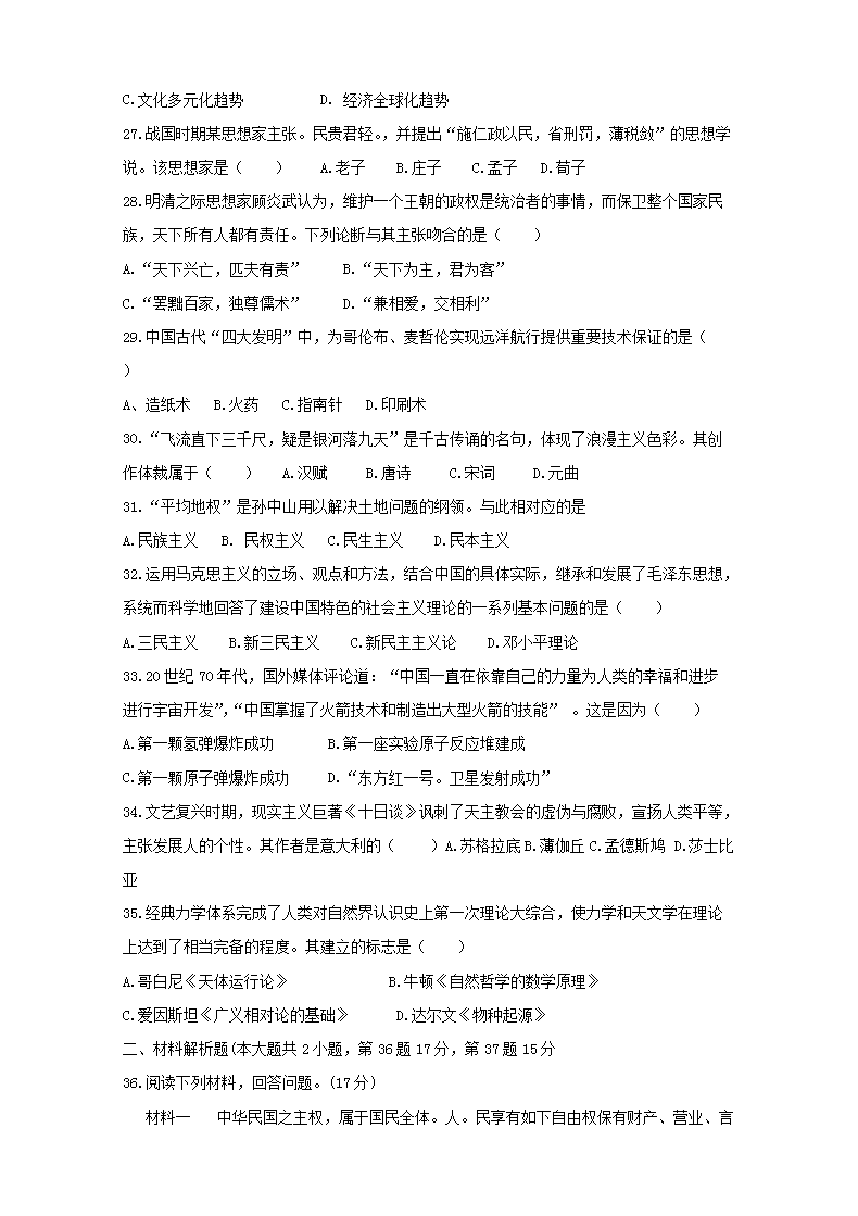 【文档名称】 2017年广西普通高中会考历史真题及答案(Word版).doc