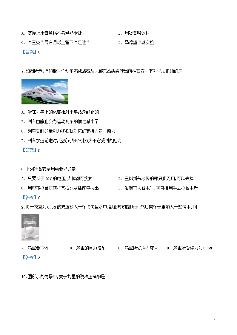 【文档名称】 2019年四川省成都市中考物理真题及答案(Word版).doc
