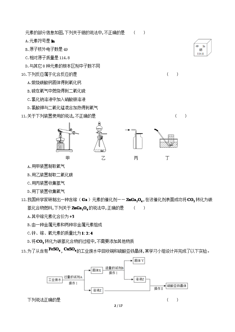【文档预览】 无忧考网整理发布2019年四川省攀枝花市中考化学真题及答案(Word版),前五页预览如下: