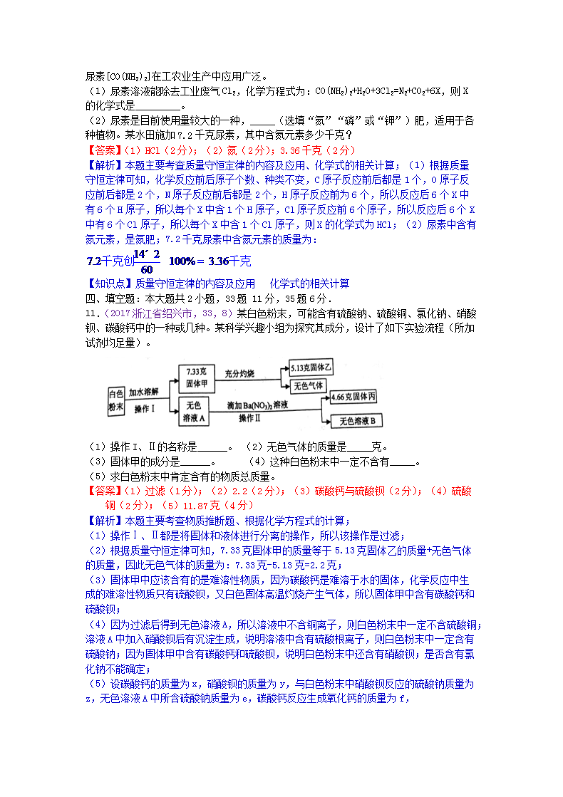 【文档预览】 无忧考网整理发布2017浙江省绍兴市中考化学真题及答案(Word版),前五页预览如下: