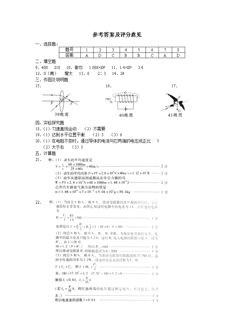 【文档名称】 2019年四川省德阳市中考物理真题及答案(Word版).doc