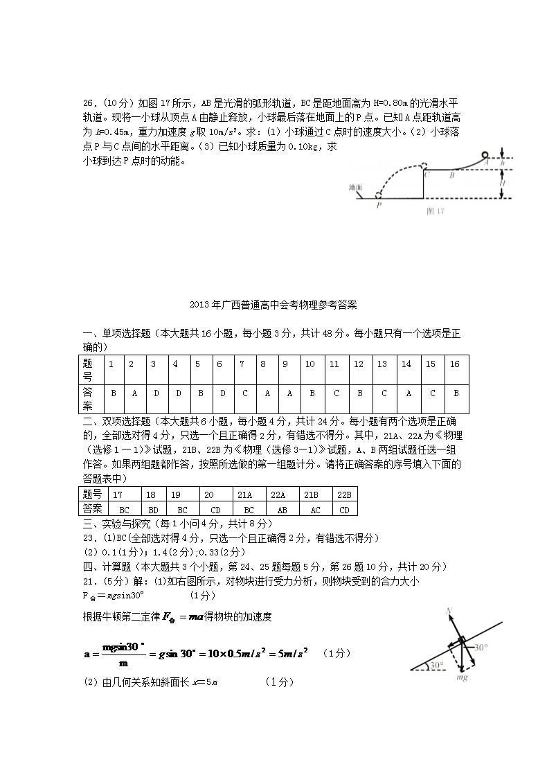 【文档名称】 2013年广西普通高中会考物理真题及答案(Word版).doc