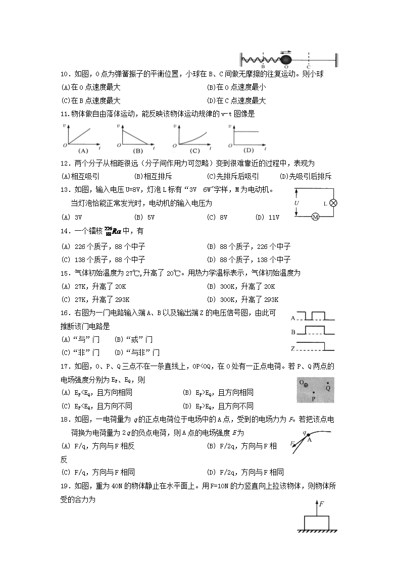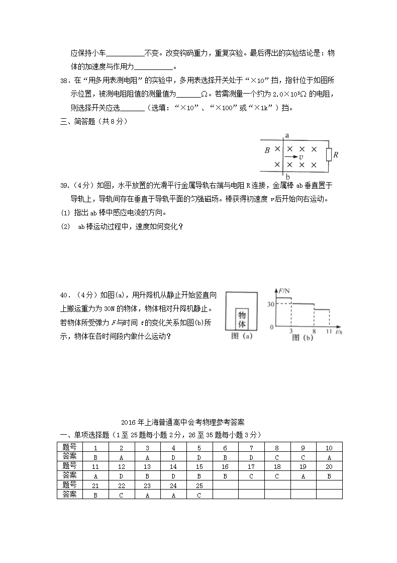 【文档名称】 2016年上海普通高中会考物理真题及答案(Word版).doc