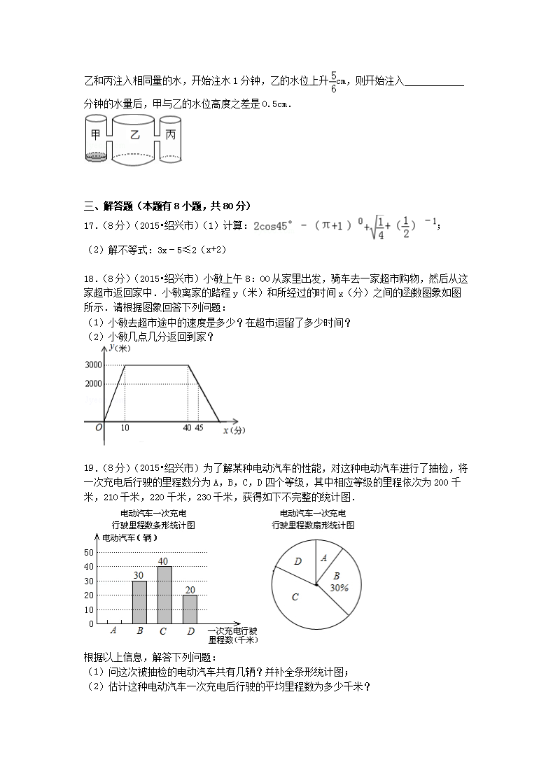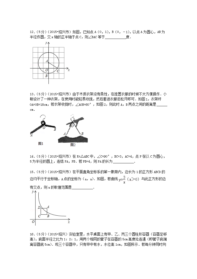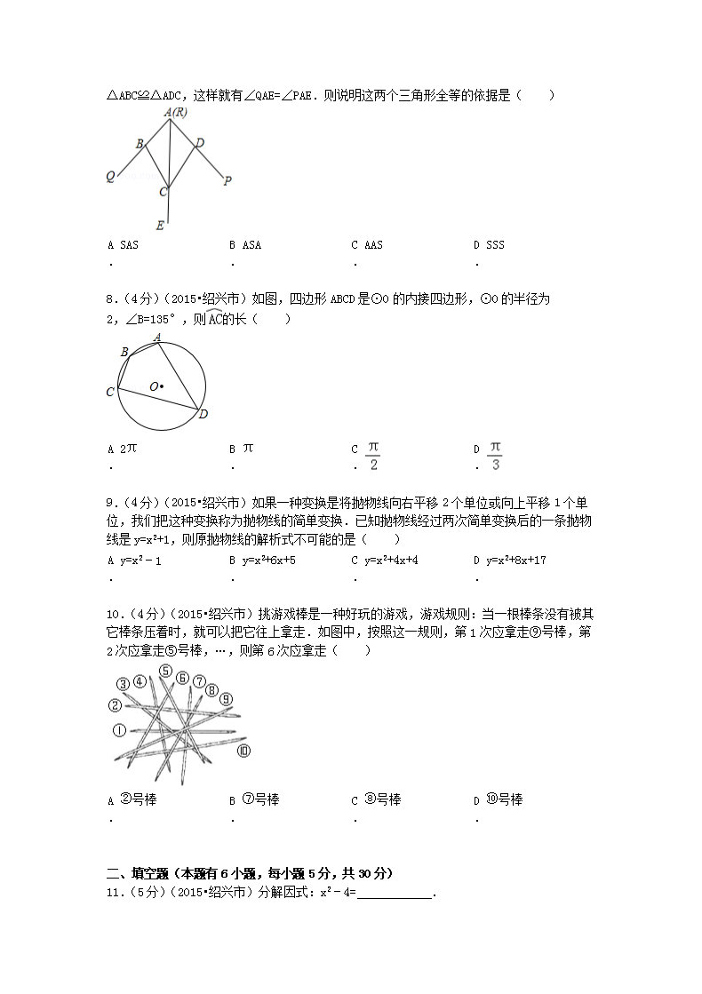 【文档名称】 2015浙江省绍兴市中考数学真题及答案(Word版).doc
