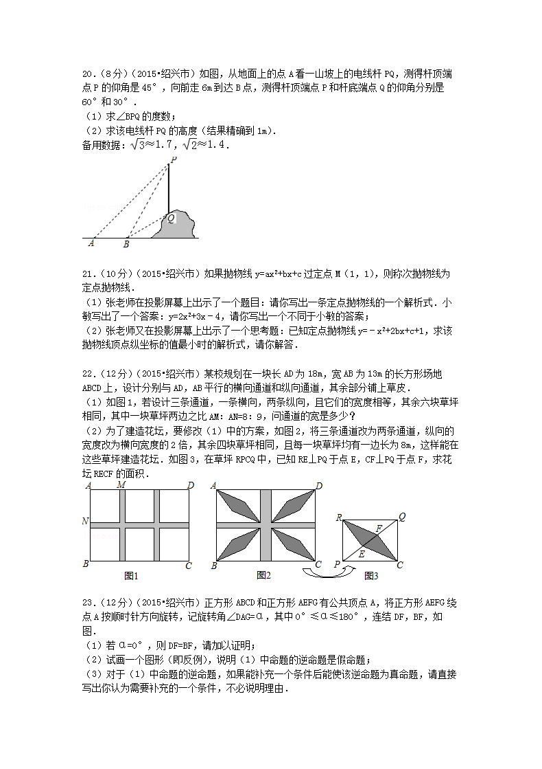 【文档预览】 无忧考网整理发布2015浙江省绍兴市中考数学真题及答案(Word版),前五页预览如下: