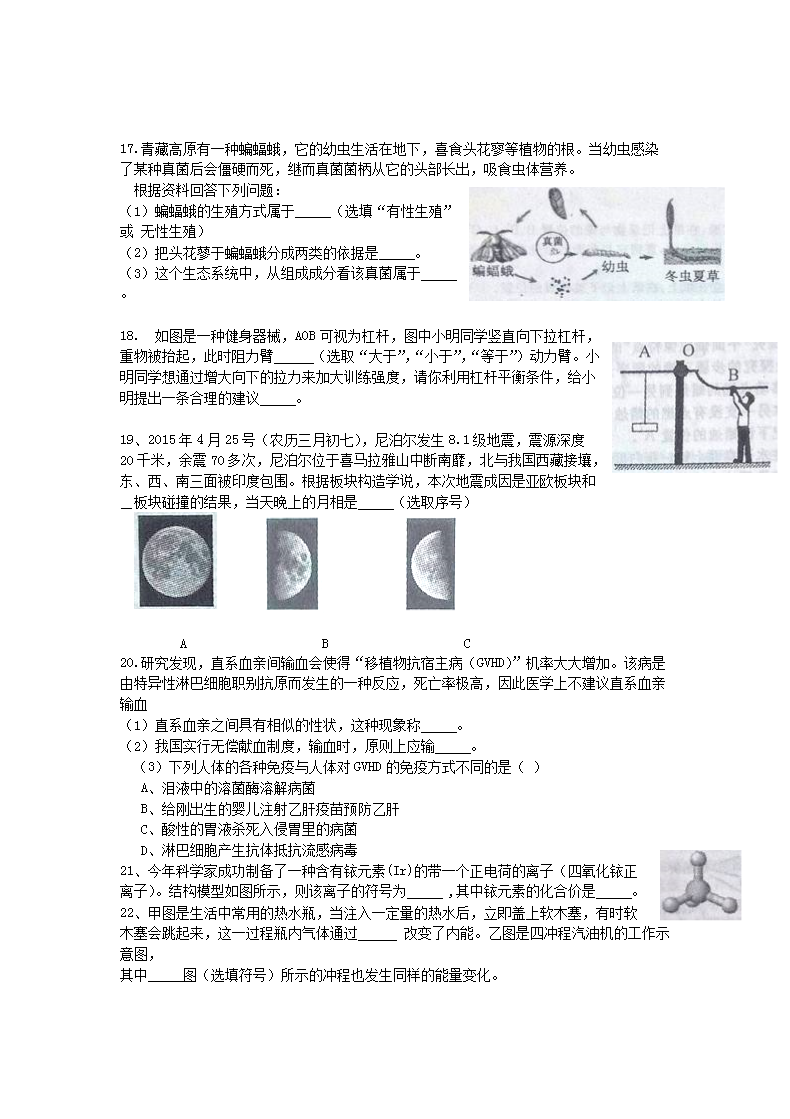 【文档名称】 2015浙江省绍兴市中考科学真题及答案(Word版).doc