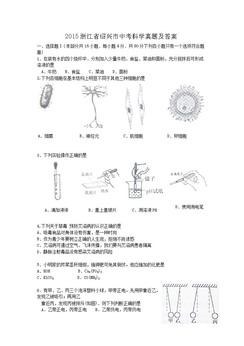 【文档预览】 无忧考网整理发布2015浙江省绍兴市中考科学真题及答案(Word版),前五页预览如下: