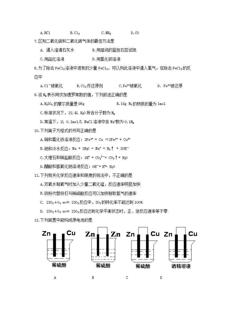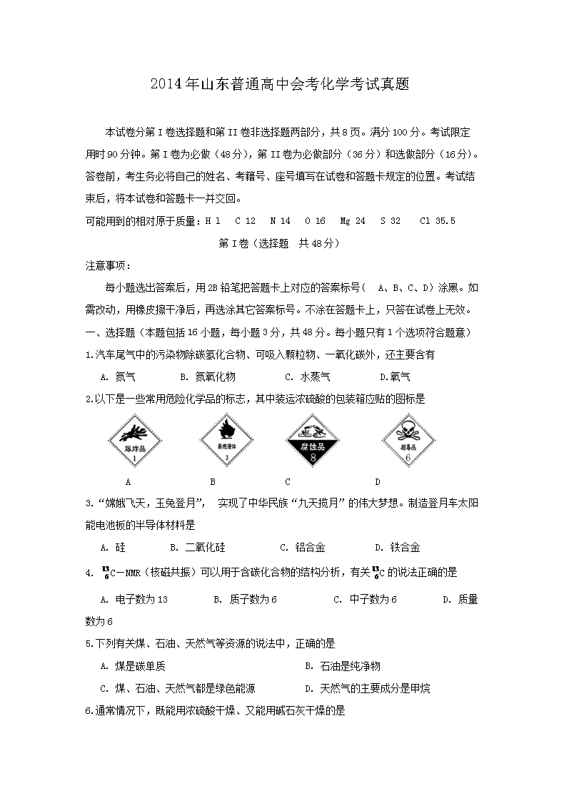 【文档名称】 2014年山东普通高中会考化学考试真题(Word版).doc