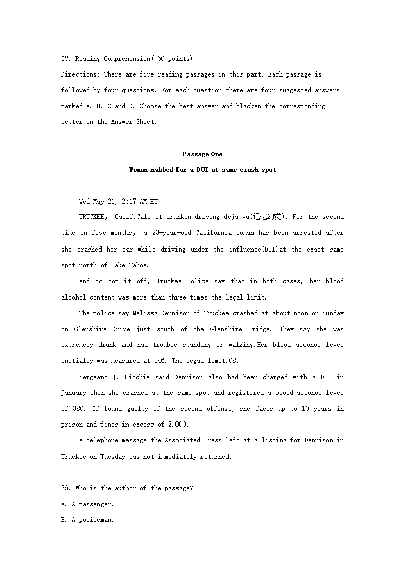 【文档预览】 无忧考网整理发布2018年河北成人高考专升本英语真题及答案(Word版),前五页预览如下: