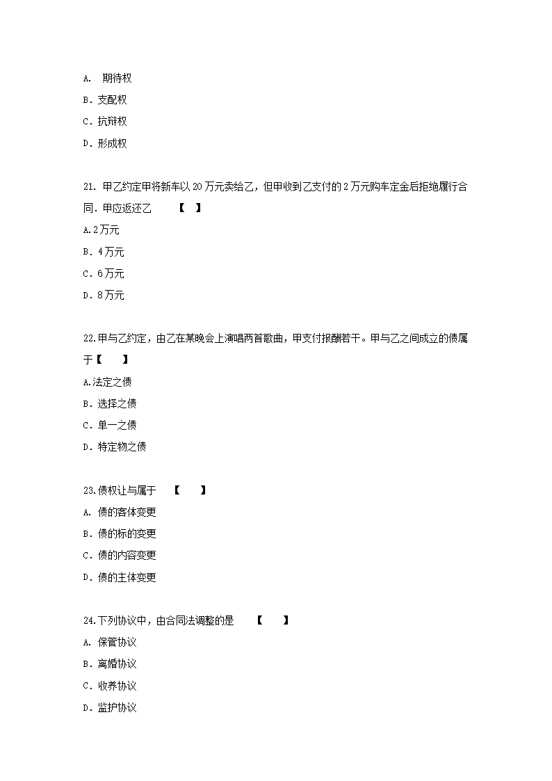 【文档名称】 2018年河北成人高考专升本民法真题及答案(Word版).doc