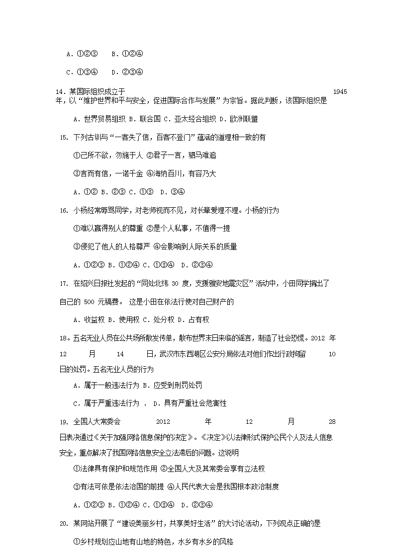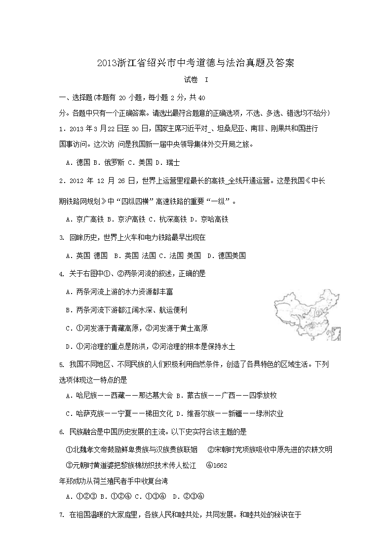 【文档名称】 2013浙江省绍兴市中考道德与法治真题及答案(Word版).doc