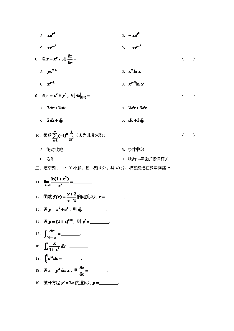 【文档预览】 无忧考网整理发布2015年海南成人高考专升本高等数学一真题及答案(Word版),前五页预览如下: