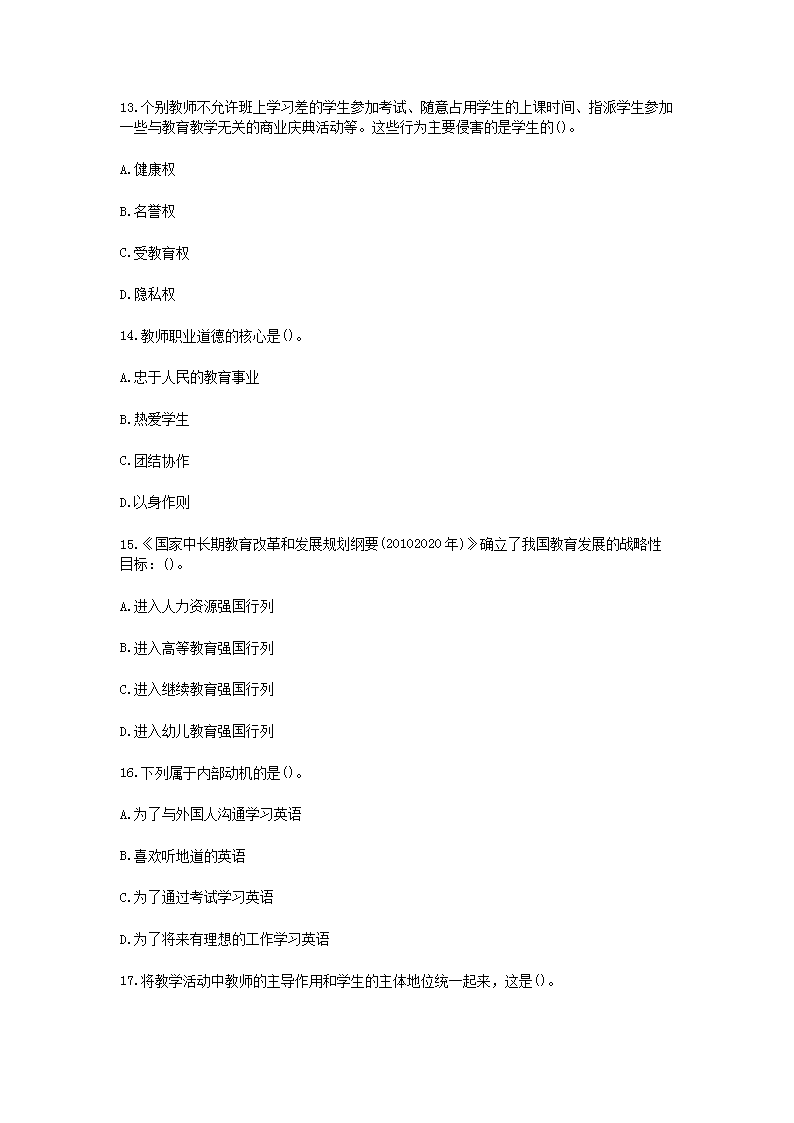 【文档名称】 2021年宁夏特岗教师招聘考试中学教育理论综合模拟题及答案三套(Word版).doc