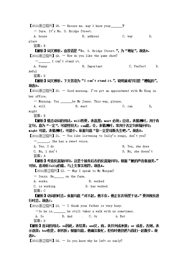 【文档名称】 2011浙江省绍兴市中考英语真题及答案(Word版).doc