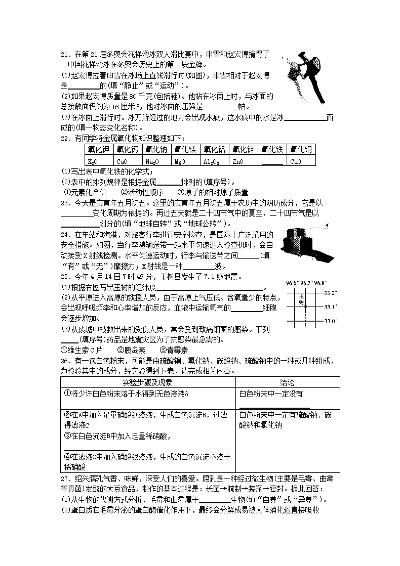 【文档名称】 2010浙江省绍兴市中考物理真题及答案(Word版).doc