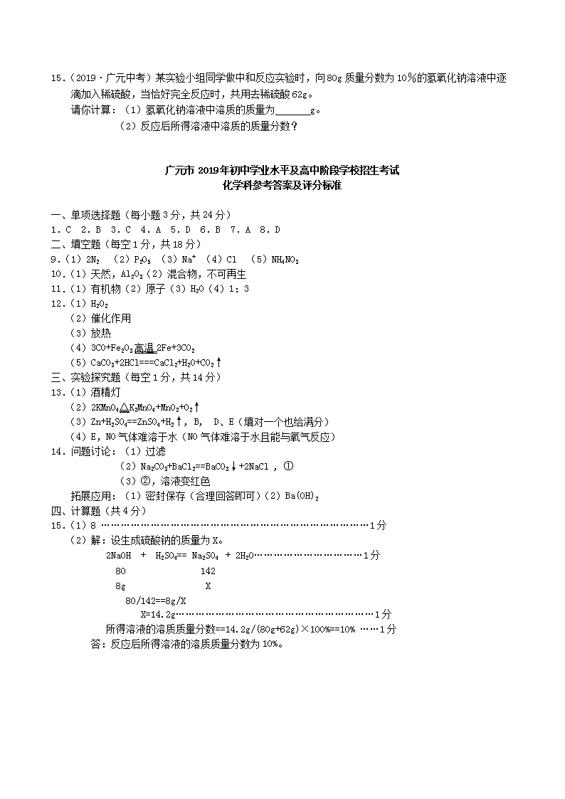 【文档名称】 2019年四川省广元市中考化学真题及答案(Word版).doc