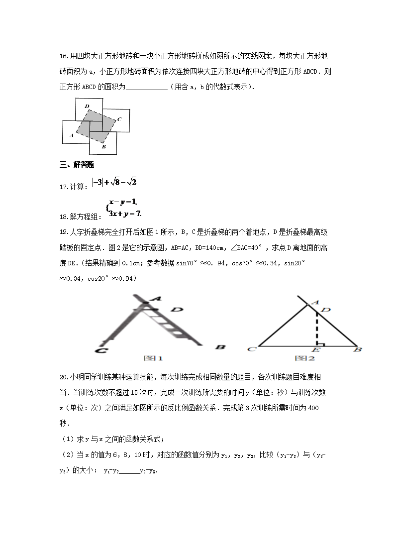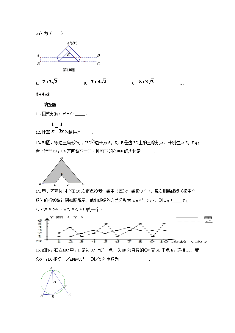 【文档名称】 2020浙江省台州市中考数学真题及答案(Word版).doc