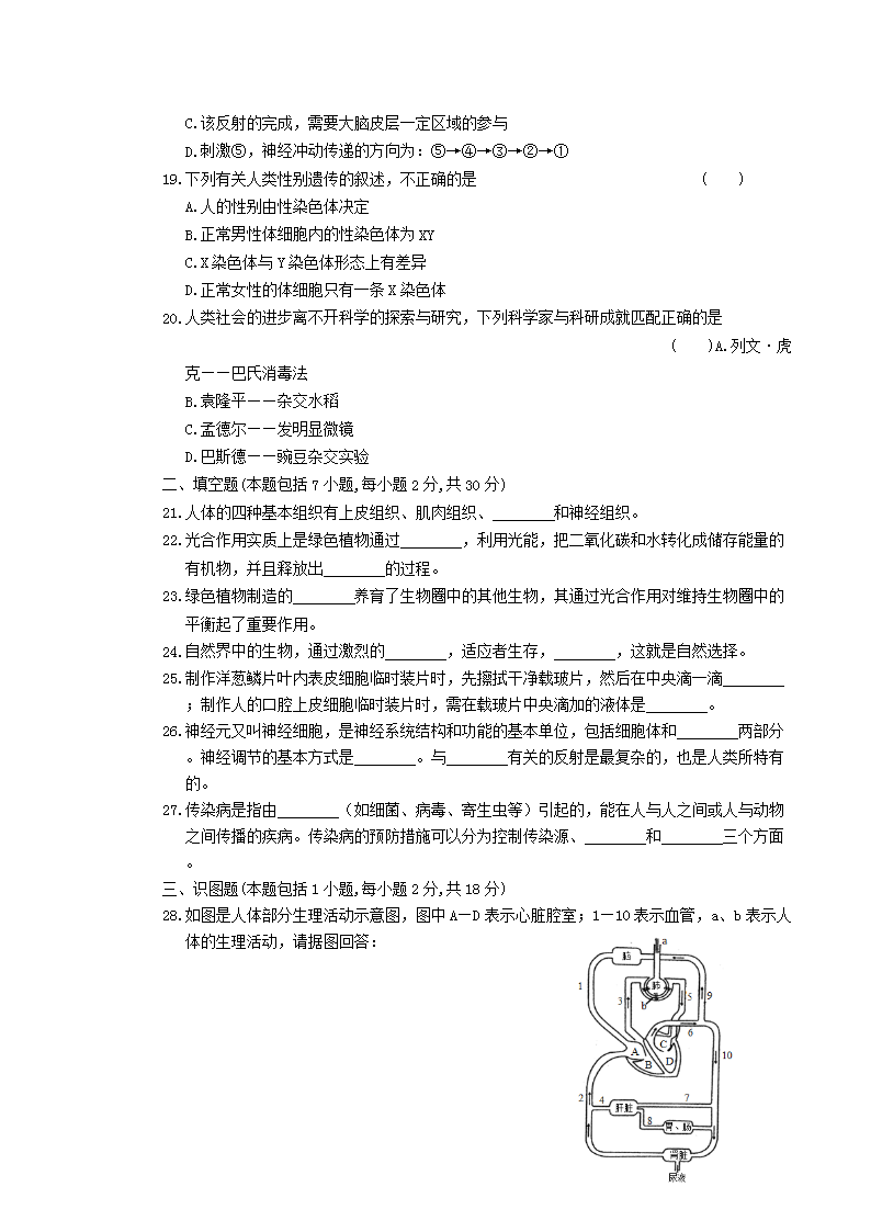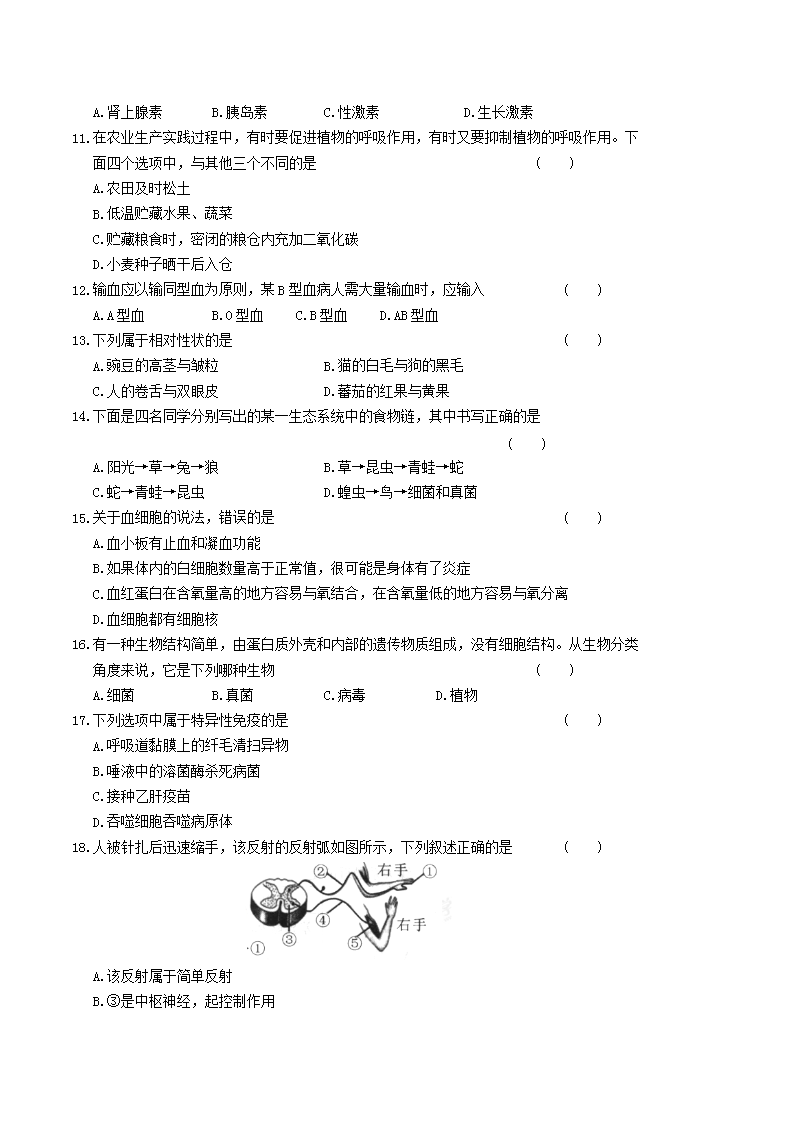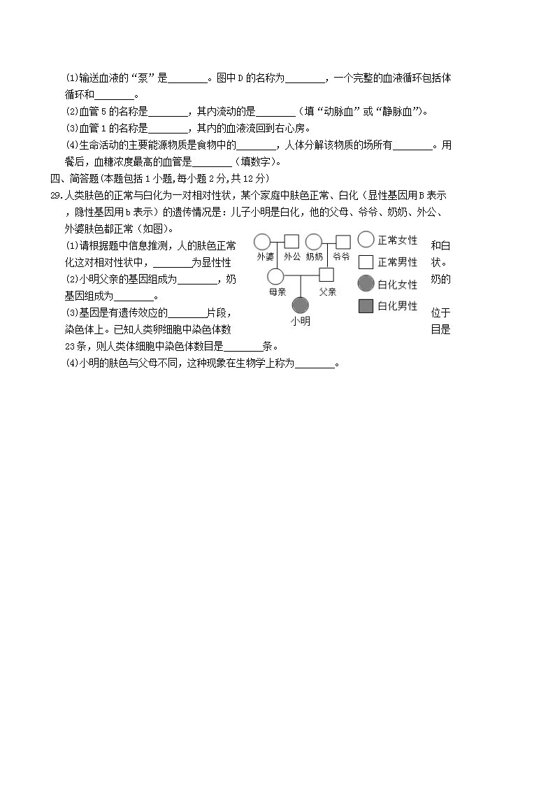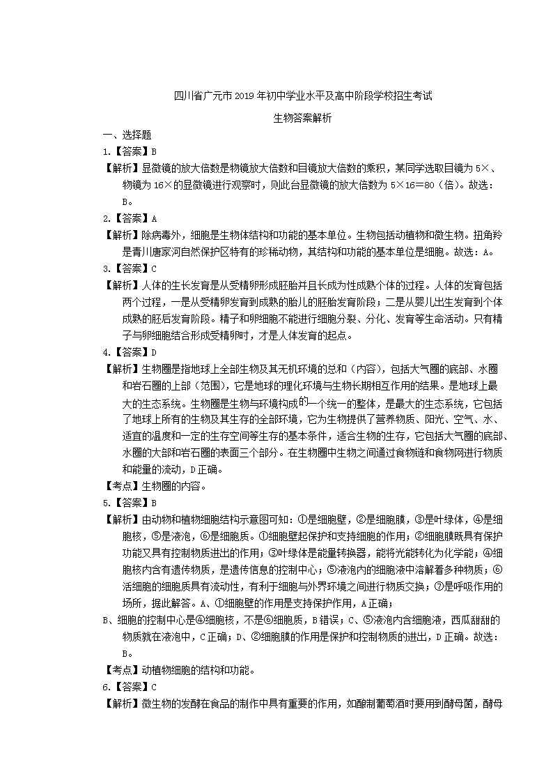 【文档名称】 2019年四川省广元市中考生物真题及答案(Word版).doc