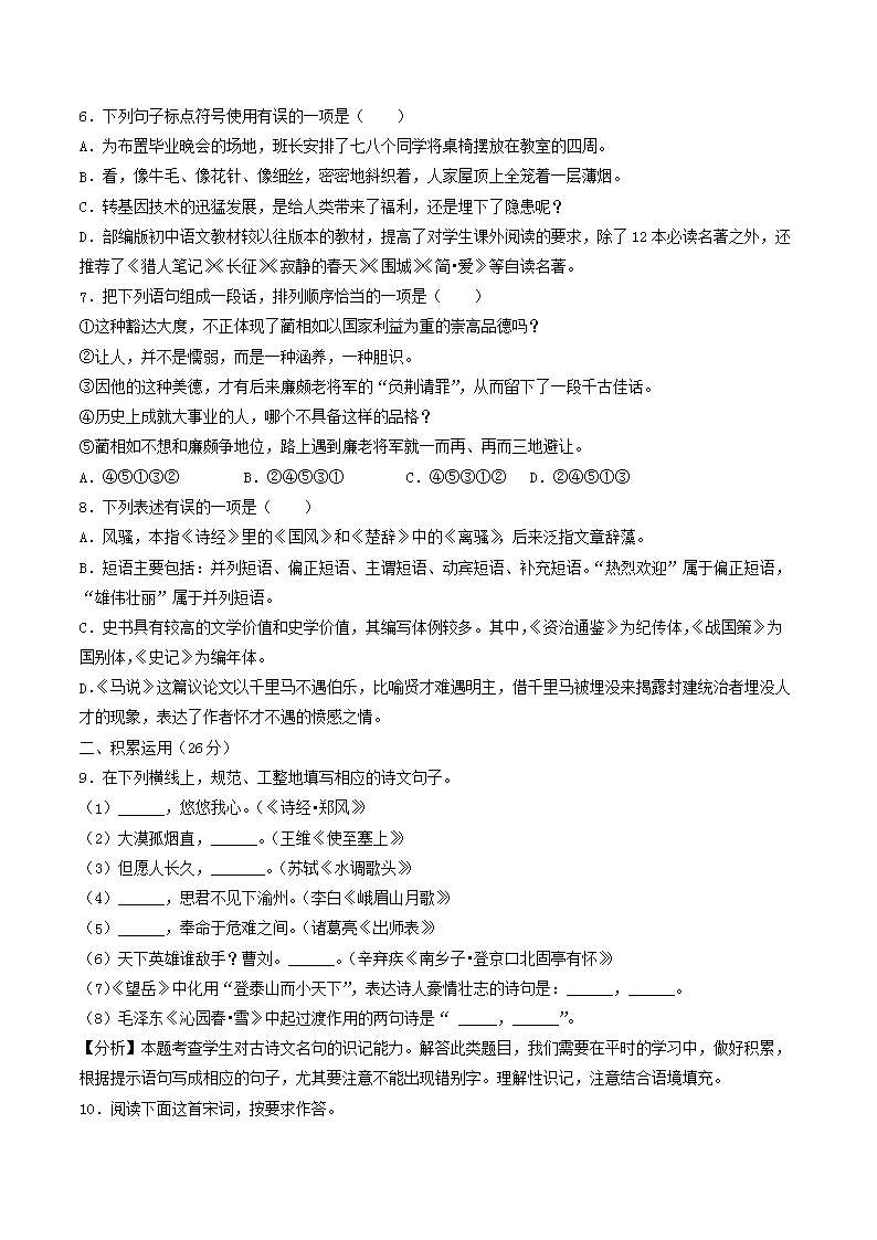 【文档名称】 2019年四川省遂宁市中考语文真题及答案(Word版).doc