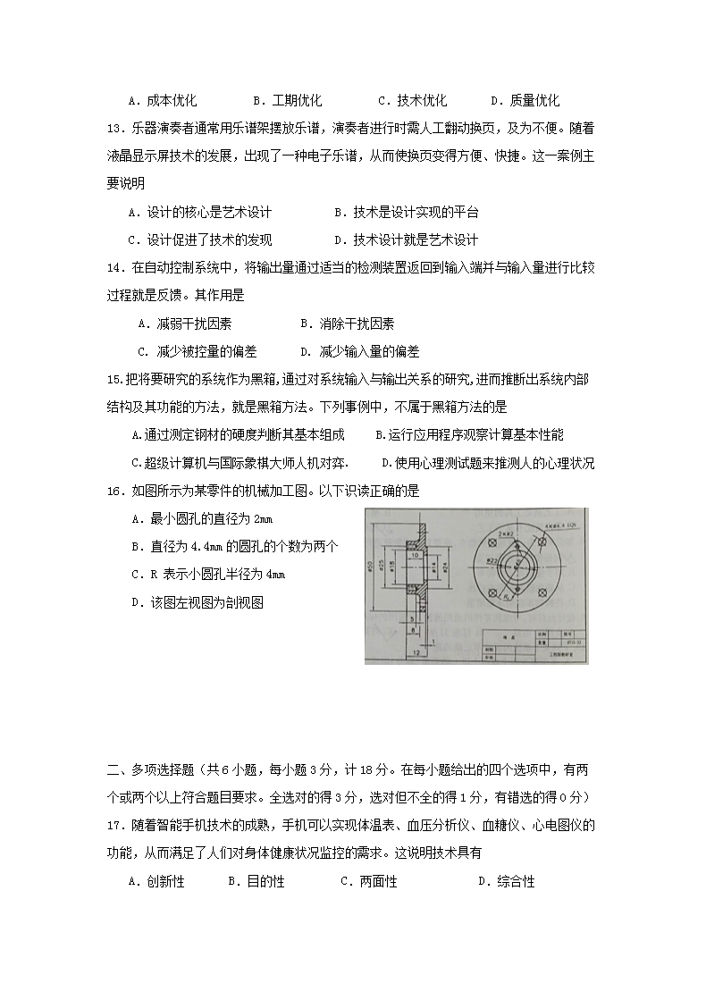 【文档名称】 2014年陕西普通高中会考通用技术真题(Word版).doc