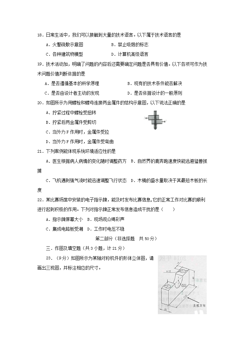 【文档预览】 无忧考网整理发布2014年陕西普通高中会考通用技术真题(Word版),前五页预览如下: