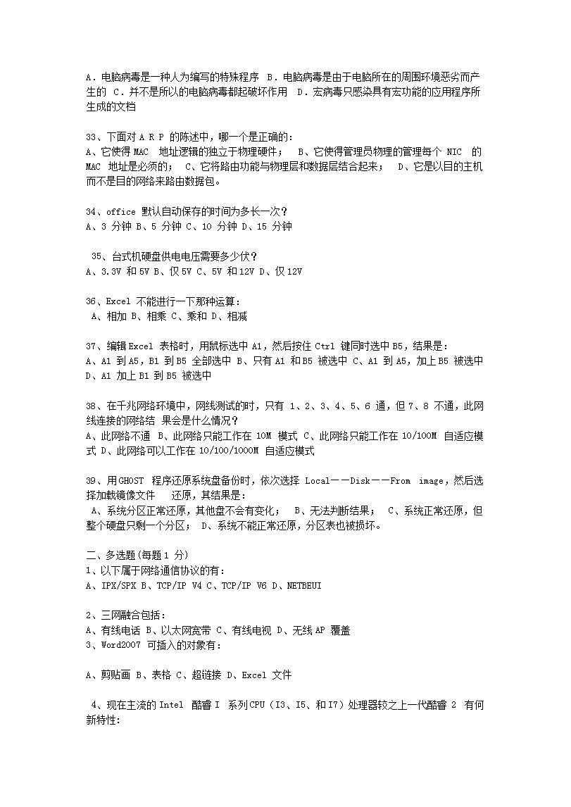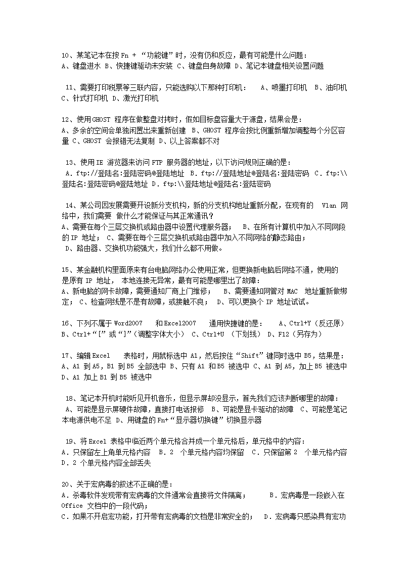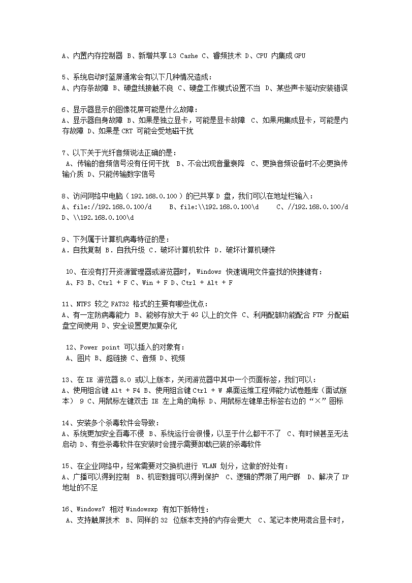 【文档预览】 无忧考网整理发布桌面运维工程师招聘考试真题及答案(Word版),前五页预览如下: