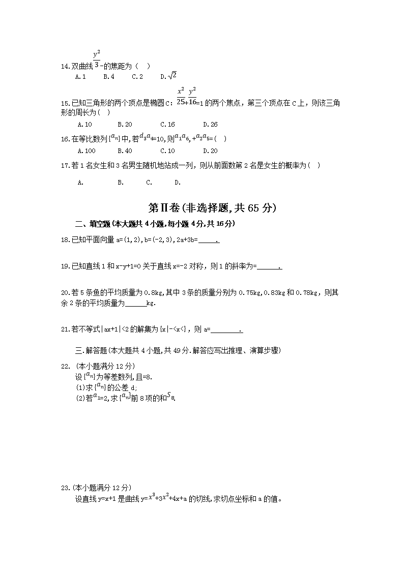 【文档名称】 2017年海南成人高考高起点数学(文)真题及答案(Word版).doc