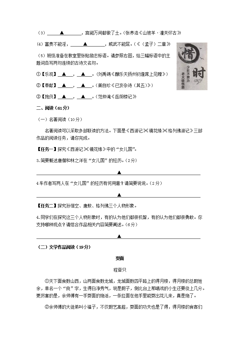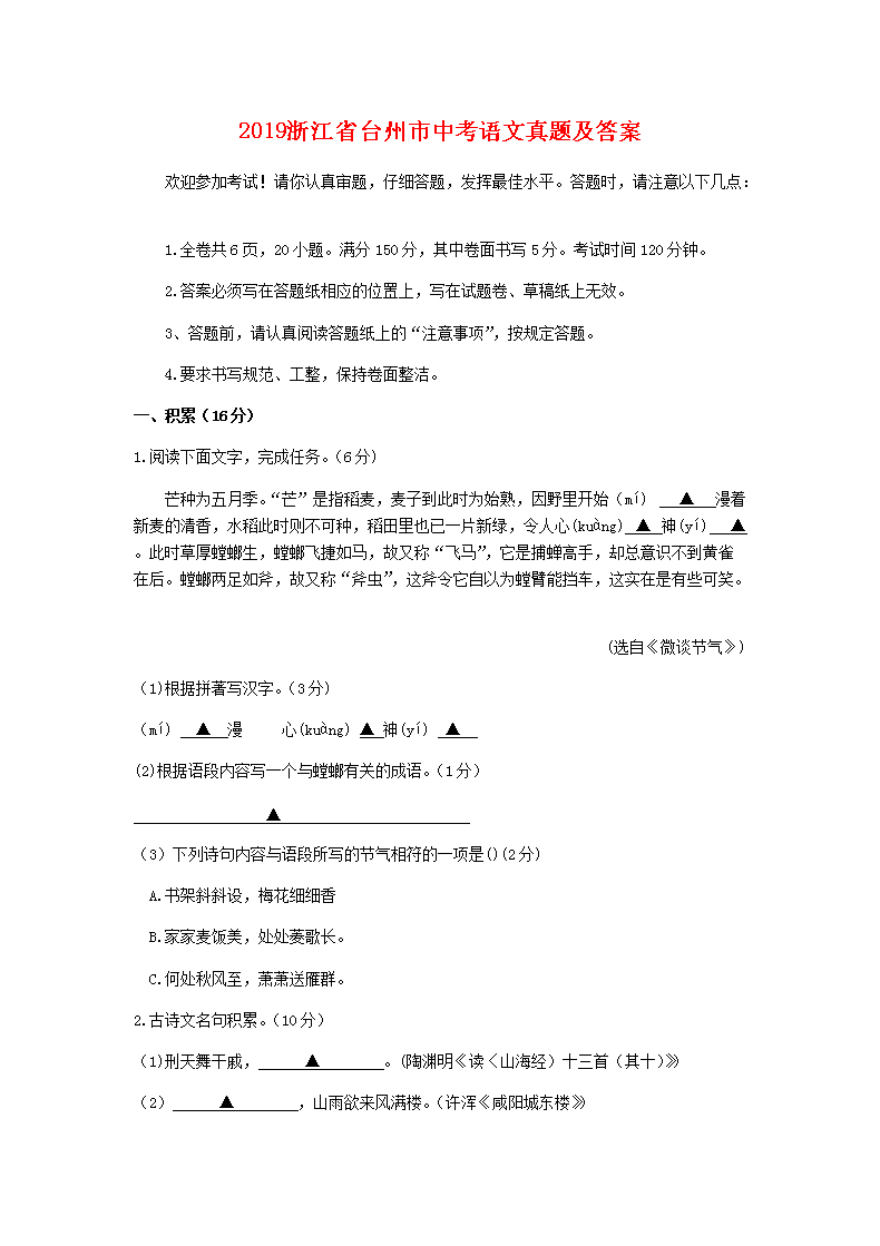 【文档名称】 2019浙江省台州市中考语文真题及答案(Word版).doc