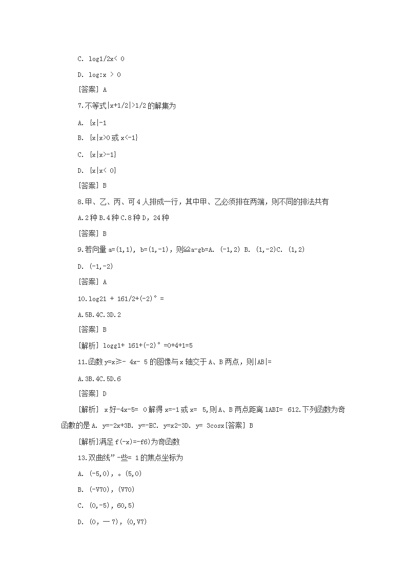 【文档预览】 无忧考网整理发布2019年海南成人高考高起点数学(文)真题及答案(Word版),前五页预览如下: