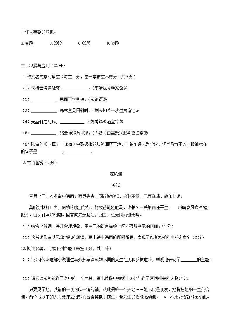 【文档名称】 2019年四川省广安市中考语文真题及答案(Word版).doc