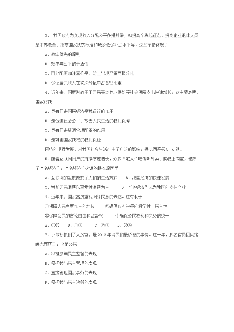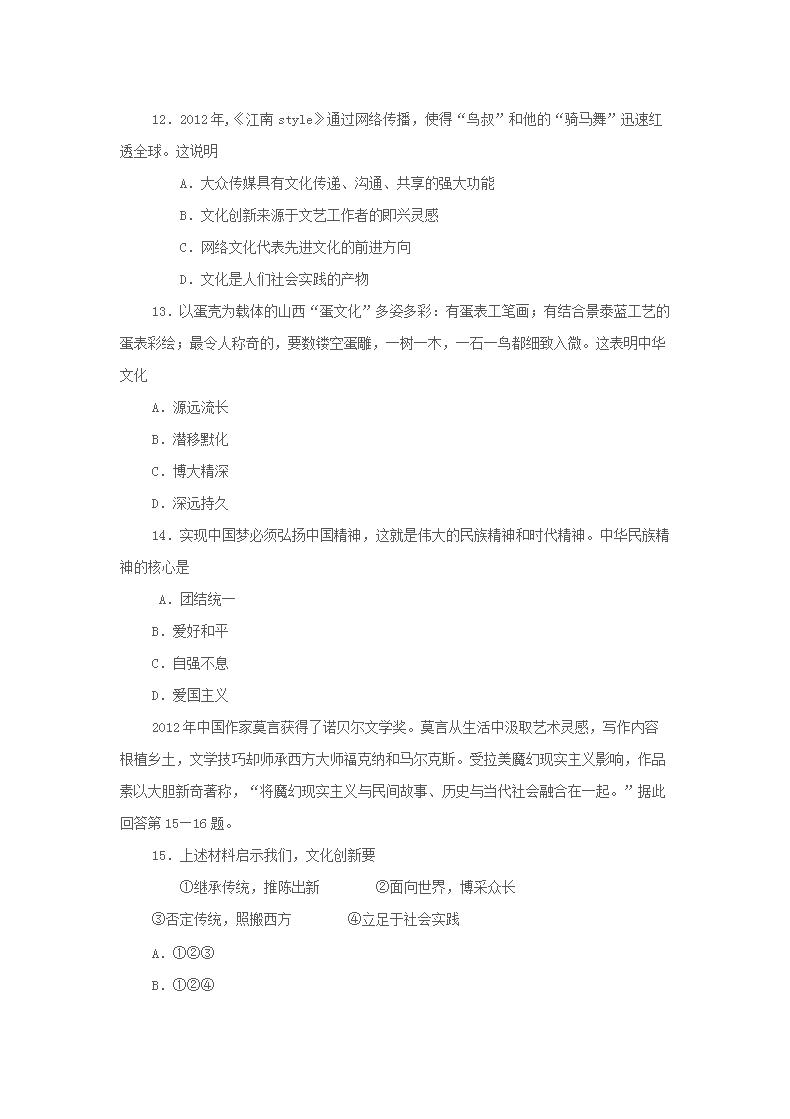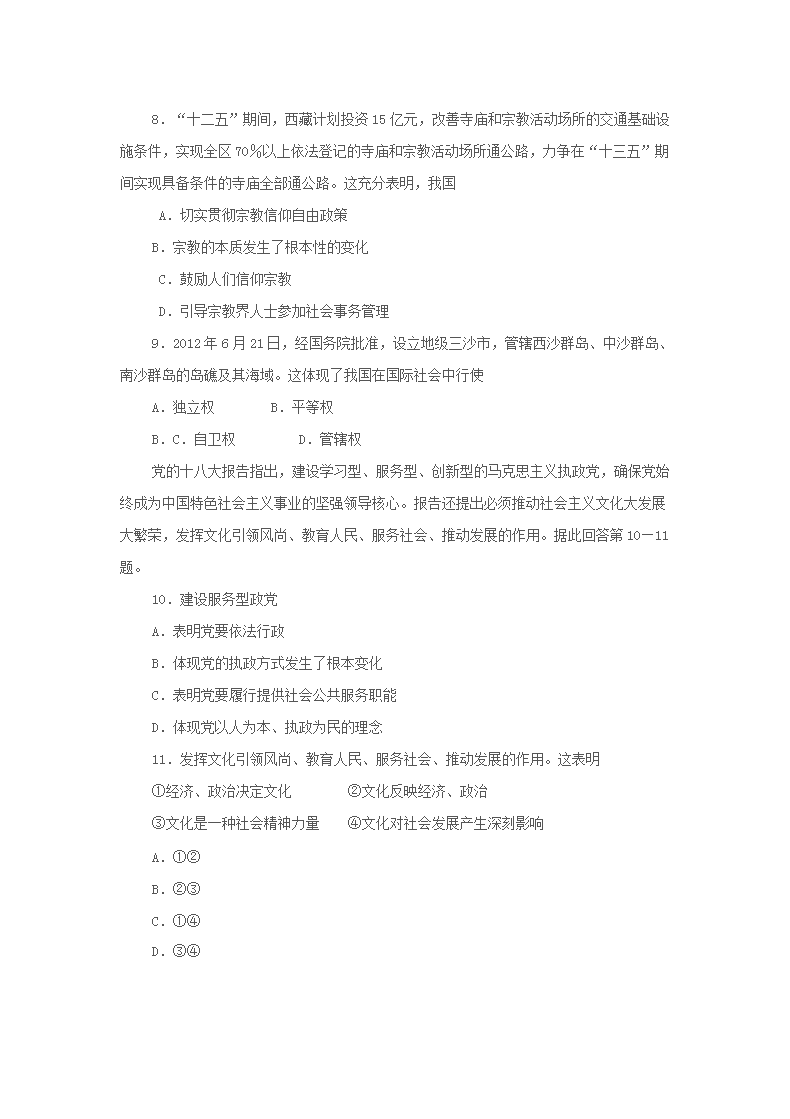 【文档名称】 2013年海南普通高中会考政治真题及答案(Word版).doc