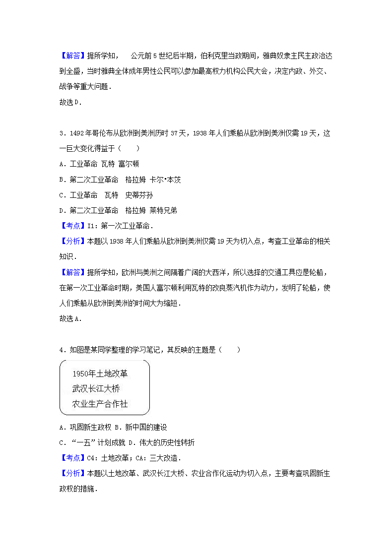【文档名称】 2017浙江省台州市中考历史真题及答案(Word版).doc