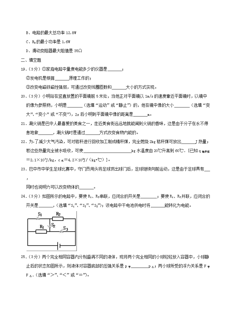 【文档名称】 2019年四川省巴中市中考物理真题及答案(Word版).doc