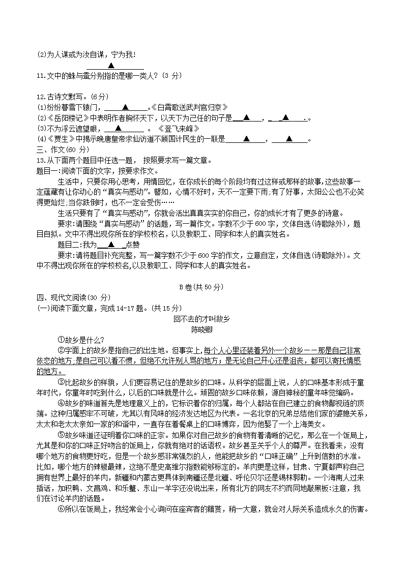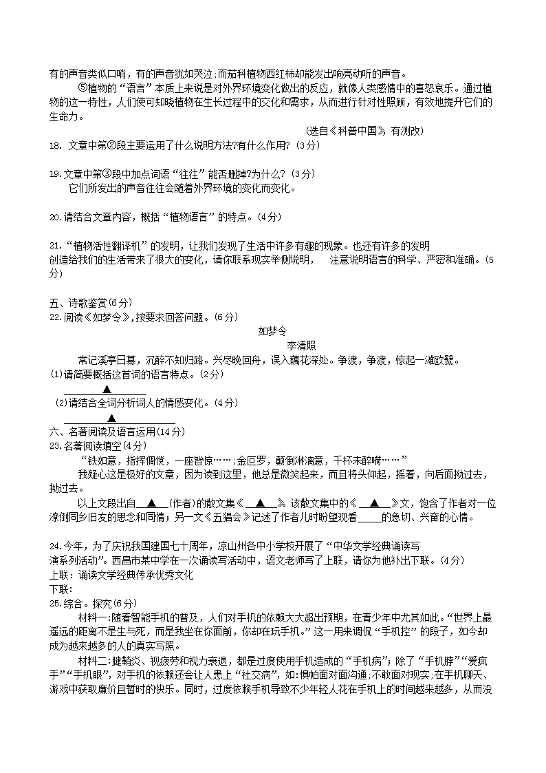 【文档名称】 2019年四川省凉山州中考语文真题及答案(Word版).doc