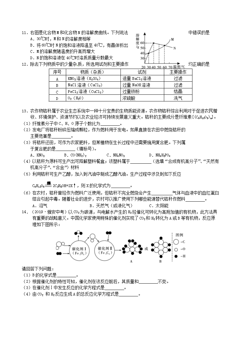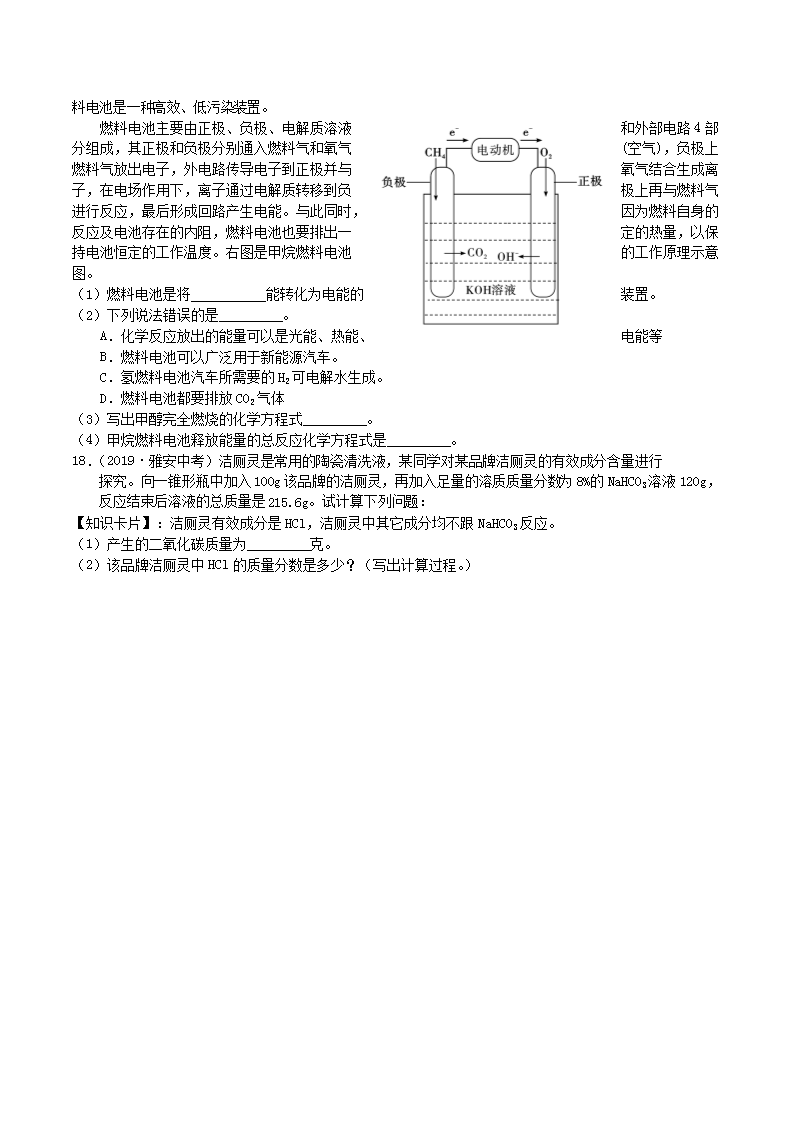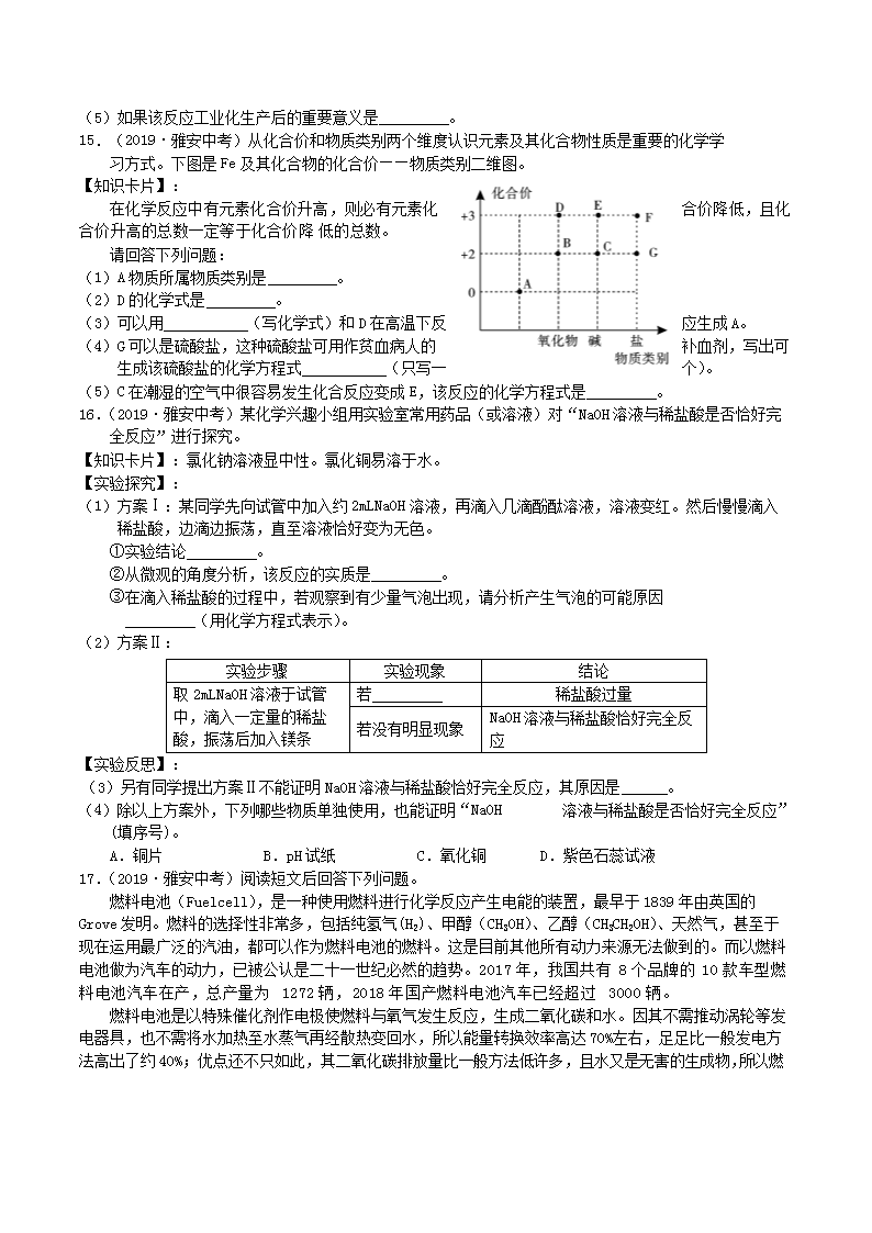 【文档名称】 2019年四川省雅安市中考化学真题及答案(Word版).doc