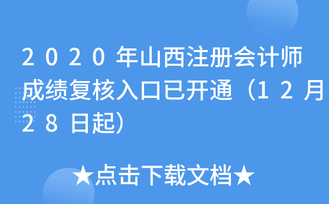 【#注册会计师考试# #2020年山西注册会计师成绩复核入口已开通(12月28日起)#】2020年山西注册会计师成绩复核时间为2020年12月28日-2021年1月11日,工作日上午8:00至晚上8:00,请对成绩存在疑惑的考生在规定时间内申请成绩复核,具体注会成绩复核办法详情如下: