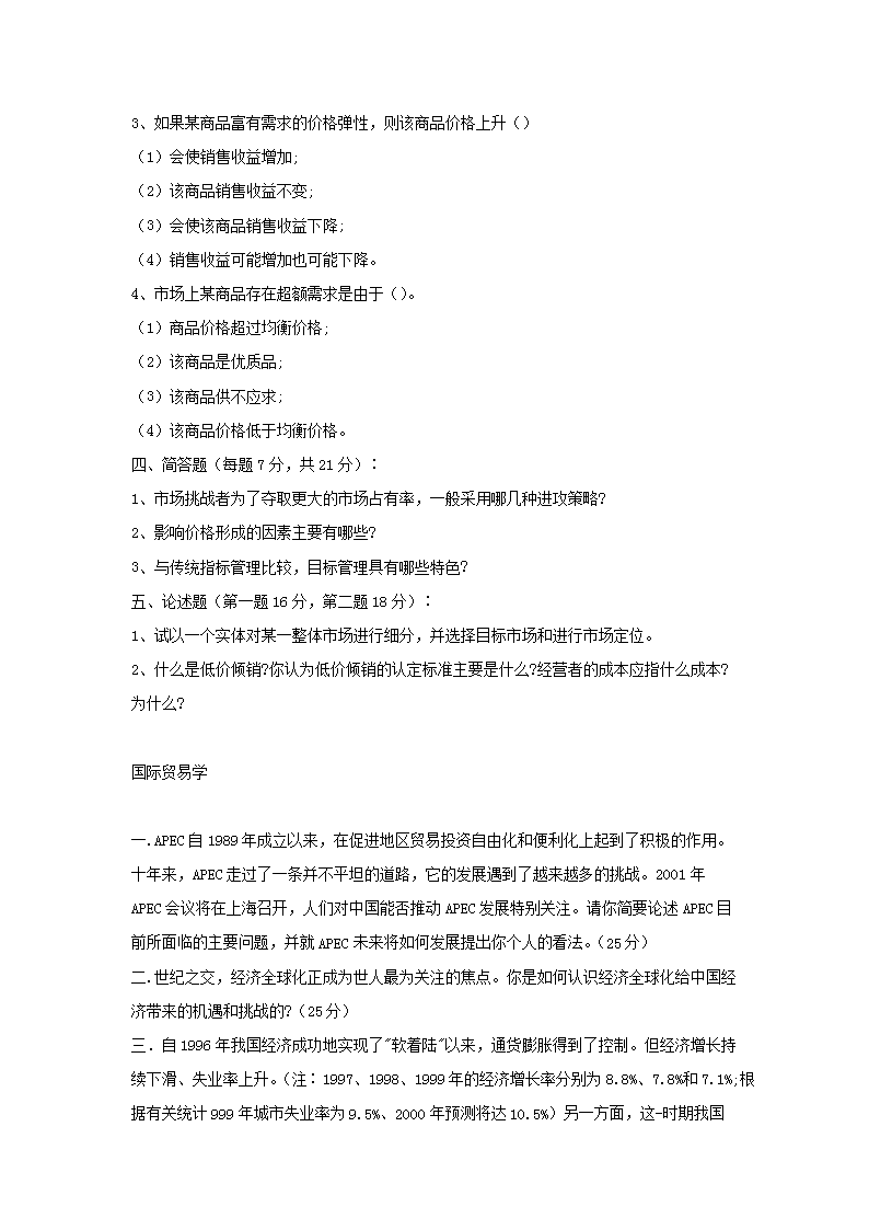 【文档预览】 无忧考网整理发布2001年福建厦门大学产业经济学与国际贸易学考研真题(Word版),前五页预览如下: