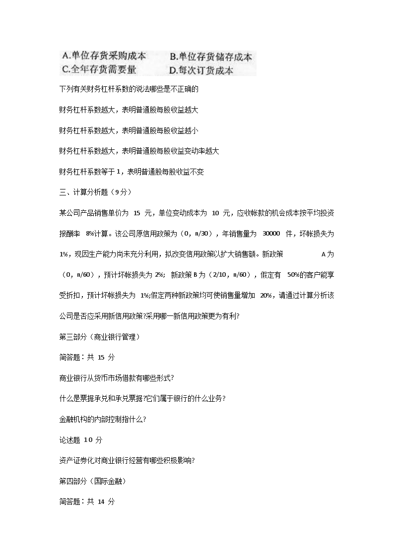 【文档预览】 无忧考网整理发布2001年福建厦门大学金融学考研真题(Word版),前五页预览如下: