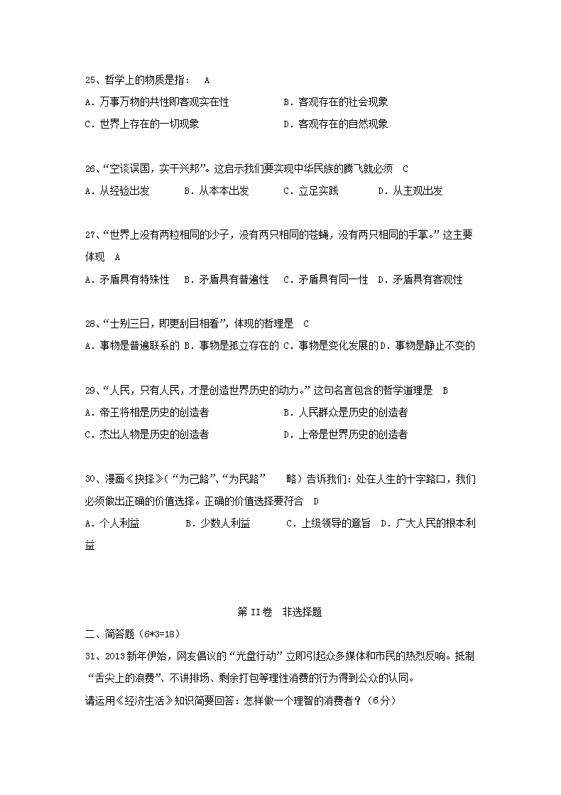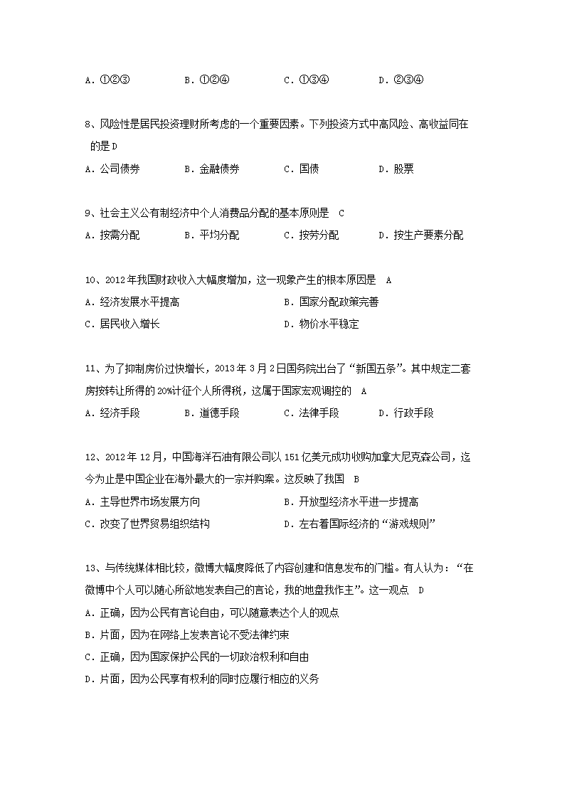 【文档名称】 2013年湖南普通高中会考政治真题及答案(Word版).doc