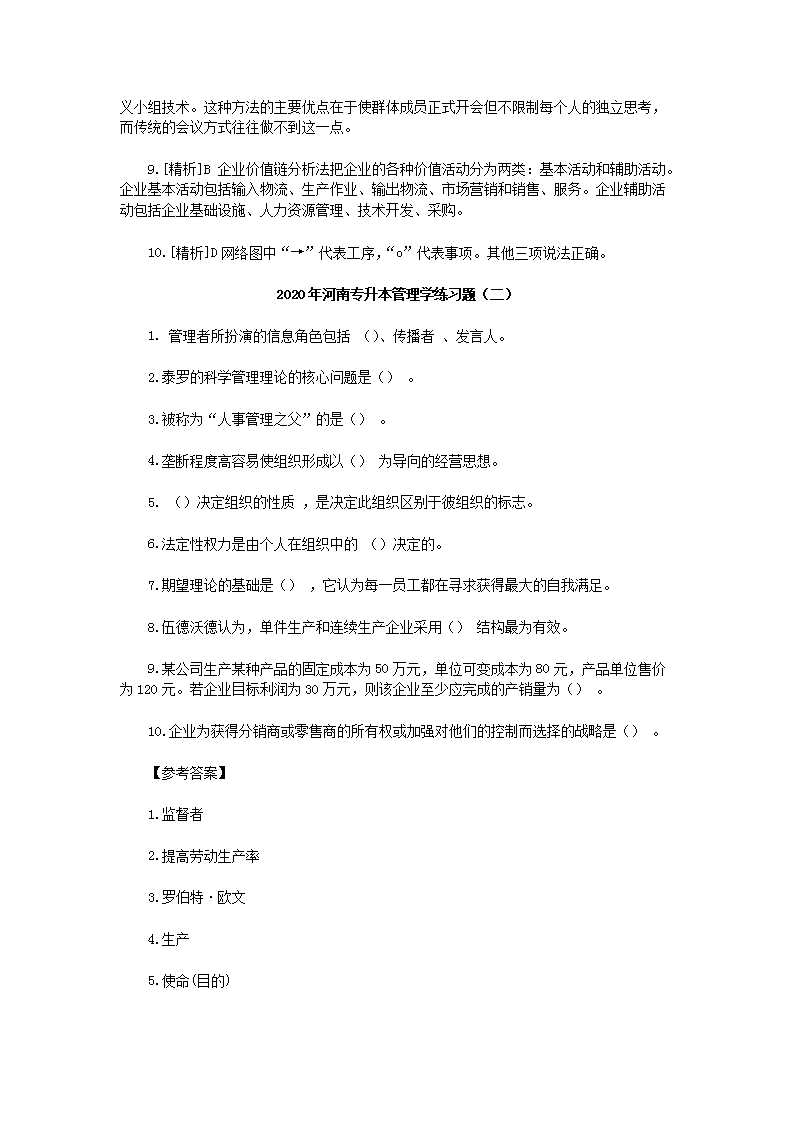 【文档名称】 2020年河南专升本管理学练习题三套(Word版).doc