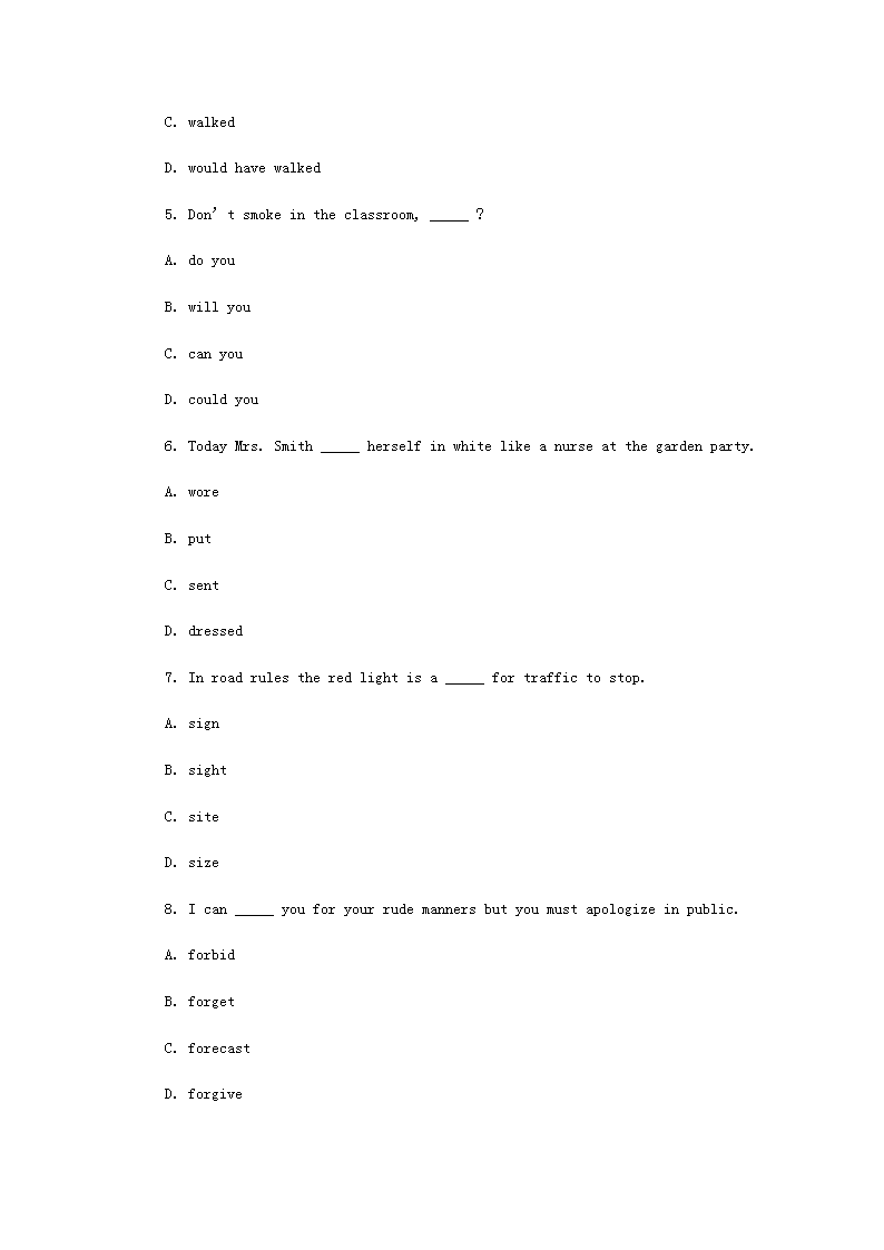 【文档预览】 无忧考网整理发布2021年河南专升本大学英语练习题三套(Word版),前五页预览如下: