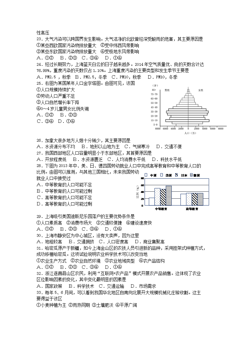 【文档名称】 2015年上海普通高中会考地理真题及答案(Word版).doc