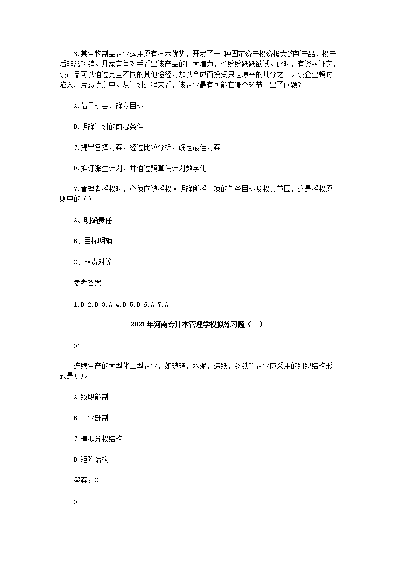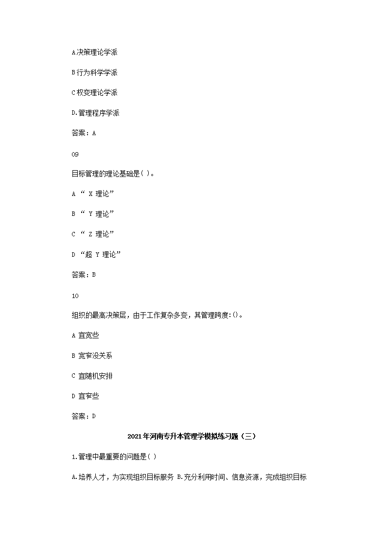 【文档预览】 无忧考网整理发布2021年河南专升本管理学模拟练习题三套(Word版),前五页预览如下: