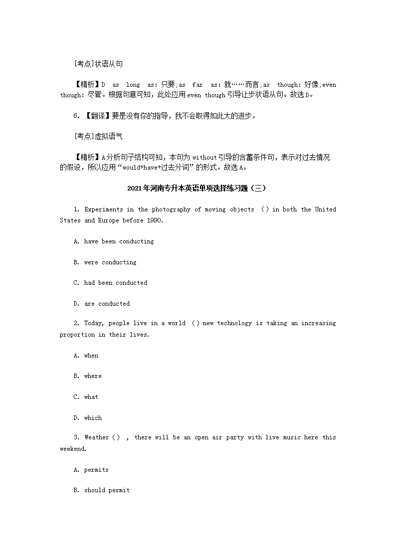 【文档名称】 2021年河南专升本英语单项选择练习题三套(Word版).doc